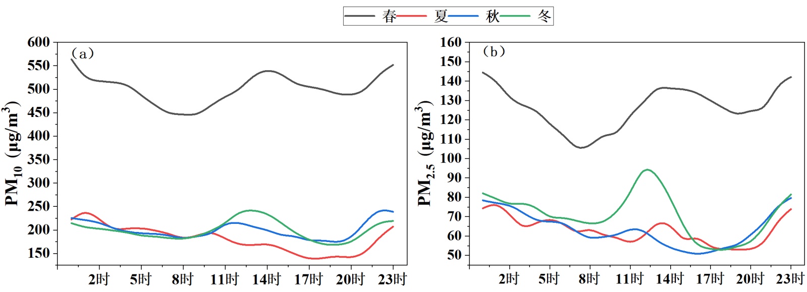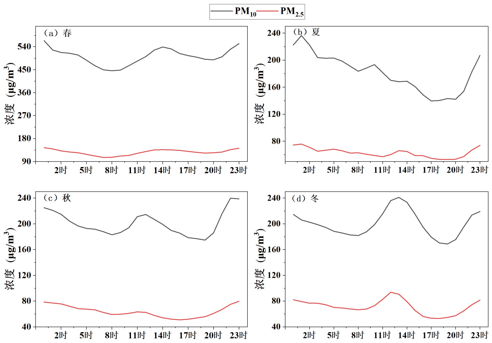 Figure 1. The diurnal variations of particulate matter concentrations in four seasons in Magaiti County from 2018 to 2024