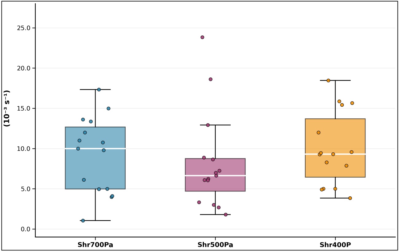图3. 208~2023年自贡雷暴大风过程的风切变特征(a:近地面到不同高度风切变特征;b:CAPE与Shr500 hPa相关性;c:湿度箱线图)