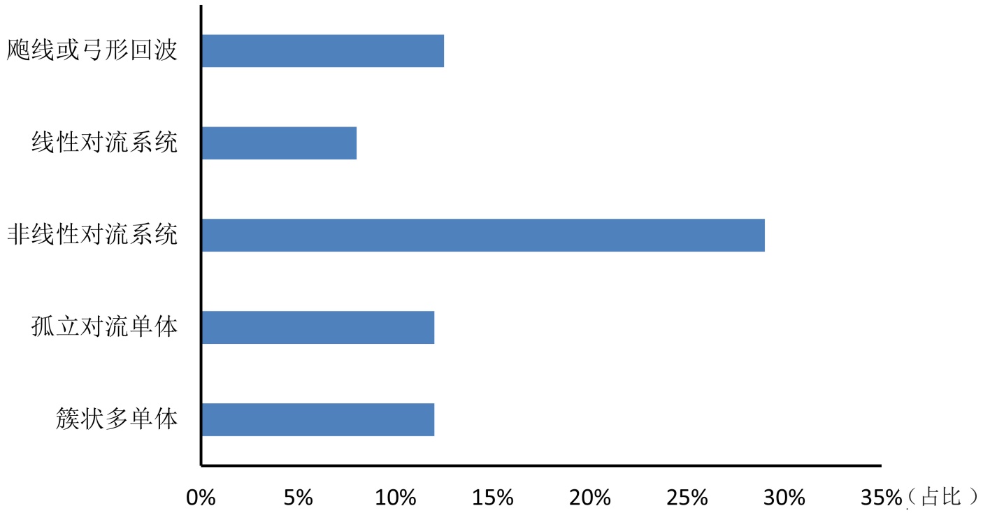 图4. 2008~2023年自贡雷暴大风过程雷达回波类型分类