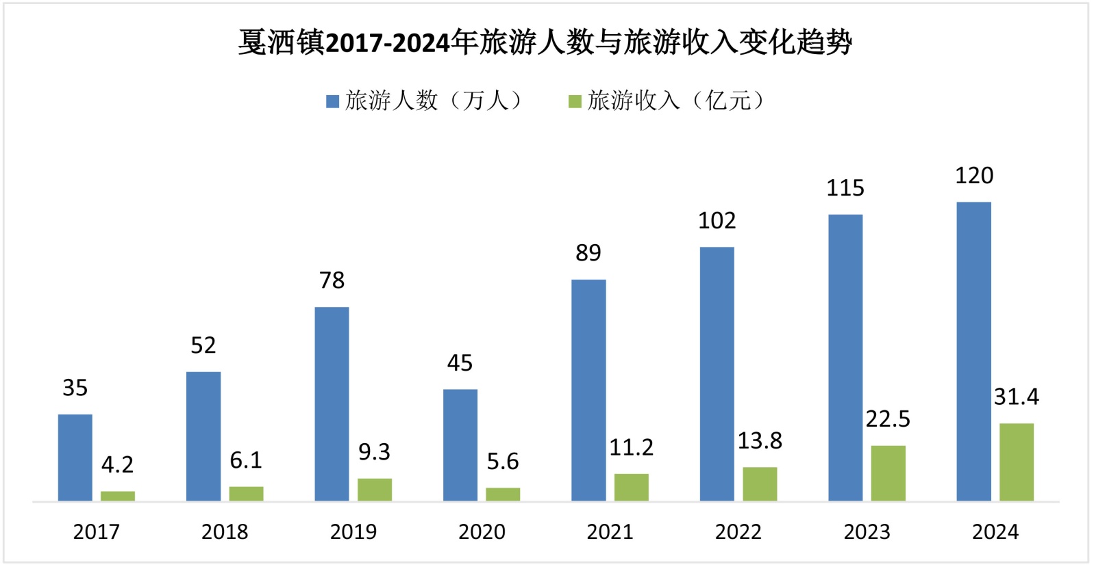 图5. 戛洒镇2017~2024年旅游人数与旅游收入变化趋势