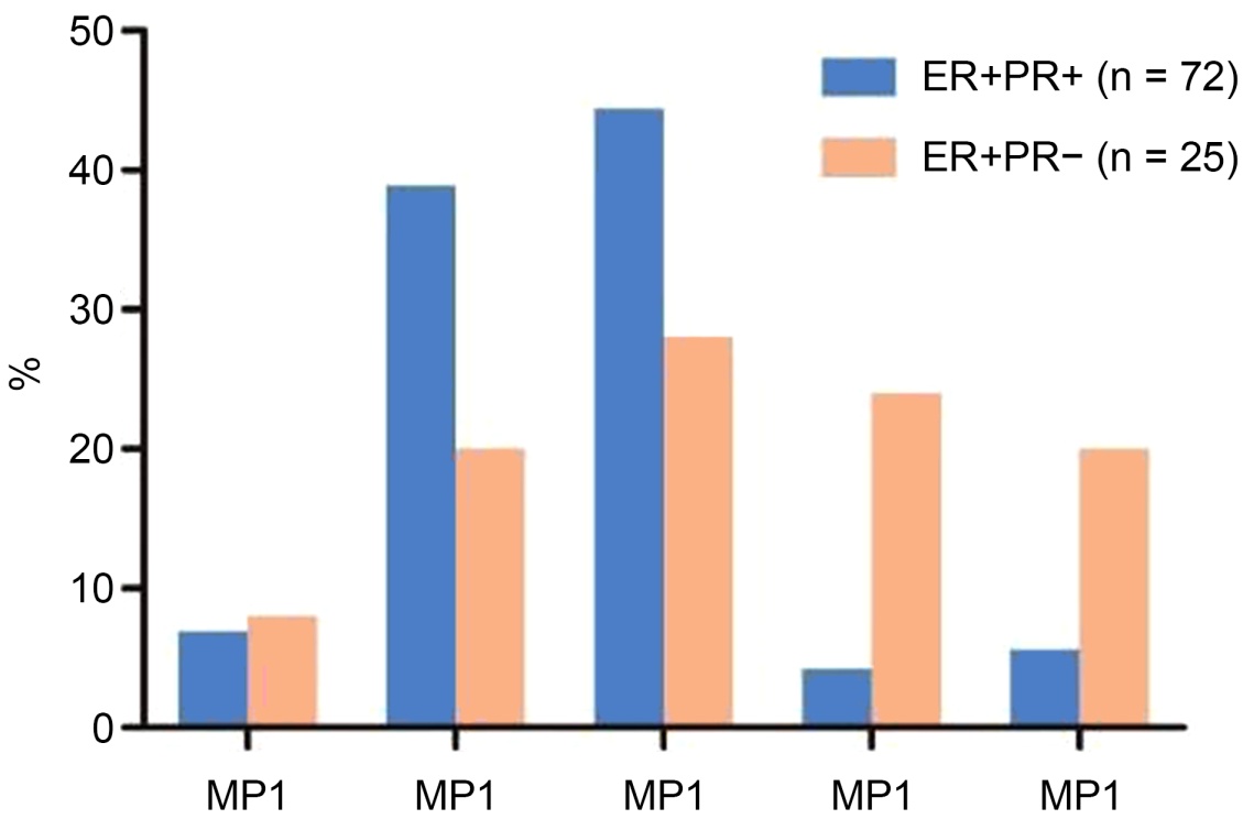 Van Asten, K., Slembrouck, L., Olbrecht, S., Jongen, L., Brouckaert, O., Wildiers, H., et al. (2019) Prognostic Value of the Progesterone Receptor by Subtype in Patients with Estrogen Receptor-Positive, HER-2 Negative Breast Cancer. The Oncologist, 24, 165-171. [Google Scholar] [CrossRef] [PubMed]