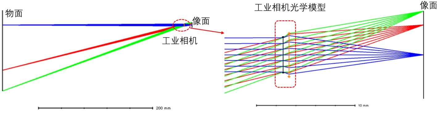 图2. 成像总览图(左)及仿真工业相机图(右)