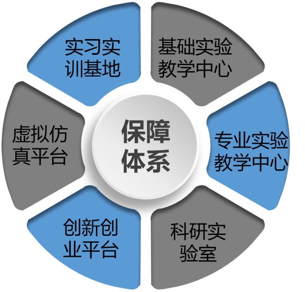 人才培养实践保障体系是为了确保高质量人才培养工作的顺利进行和有效实施。本文搭建基础实验教学中心、专业实验教学中心、科研实验室、创新创业平台、虚拟仿真平台、校内外实习基地“六位一体”的人才培养实践保障体系(见图4),有效推动学生的综合素质提升,培养具有创新精神和实践能力的高素质人才,为社会和行业培养更符合需求的人才做出贡献。