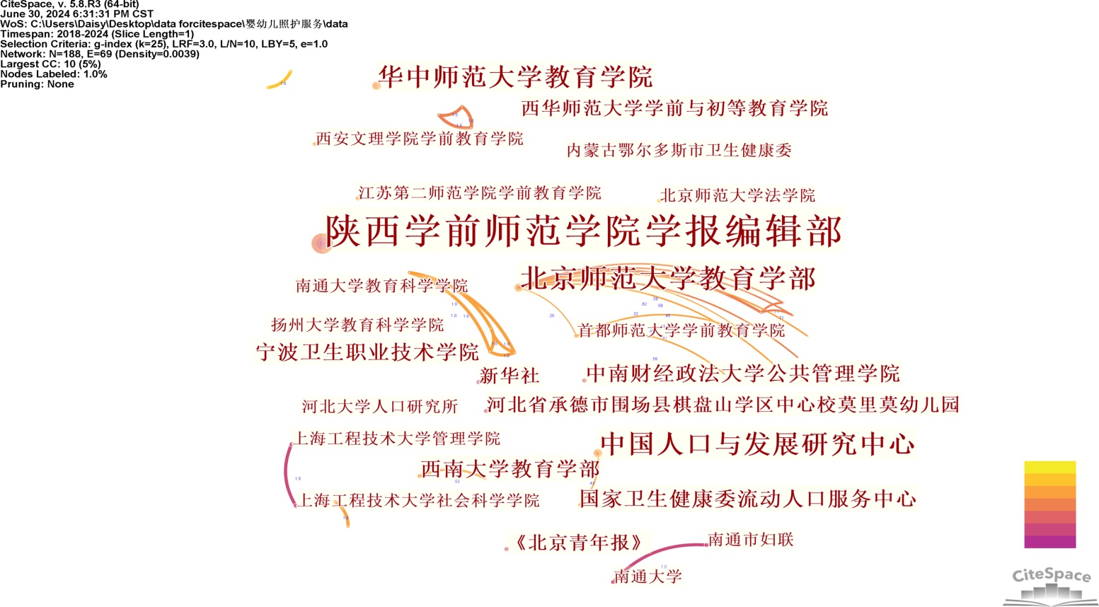 图3. 婴幼儿照护服务研究机构合作网络图谱