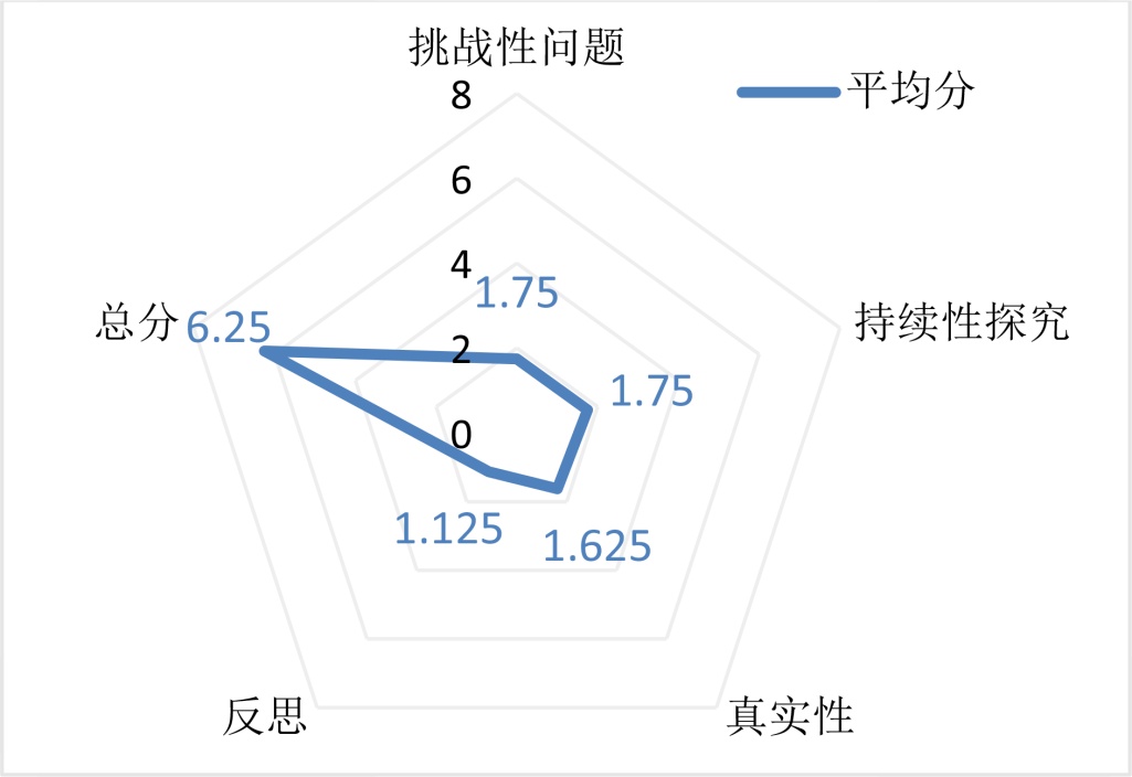 编码完成后,采用Fleiss’s Kappa系数[17]对评分者间一致性进行检验。结果显示,三名评分员在各维度的编码一致性系数分别为:挑战性问题(κ = 0.501,表明评分者间一致性处于中等至良好水平);持续性探究(κ = 0.501,表明评分者间一致性处于中等至良好水平);真实性(κ = 0.486,表明评分者间一致性处于中等水平);反思(κ = 0.748,表明评分者间一致性处于良好水平)。整体而言,各维度的一致性均处于中等及以上水平,其中反思维度的一致性最为突出。对于少数存在分歧的编码项,研究团队通过共同核对文本证据、回溯评分标准并协商的方式达成最终共识,进一步提升了编码结果的信度。