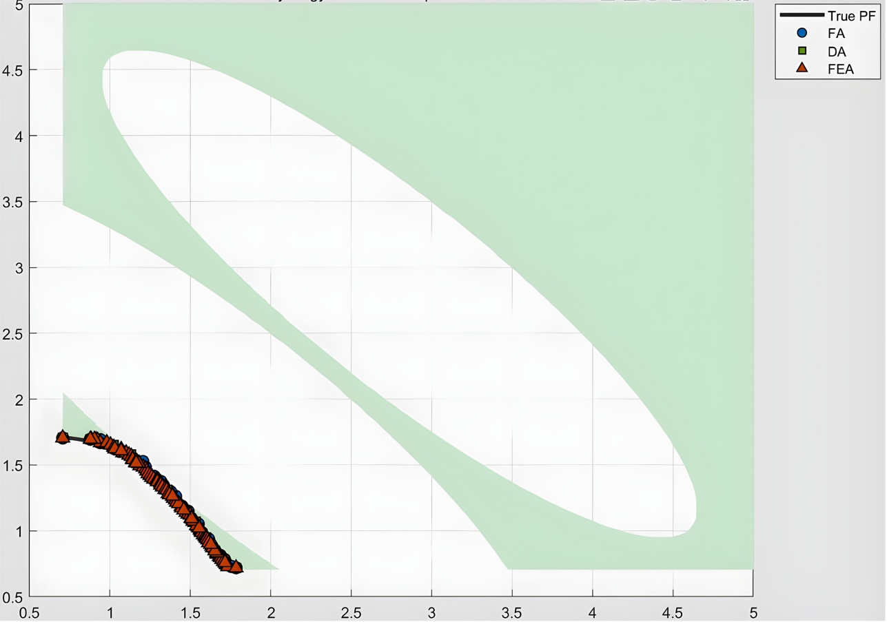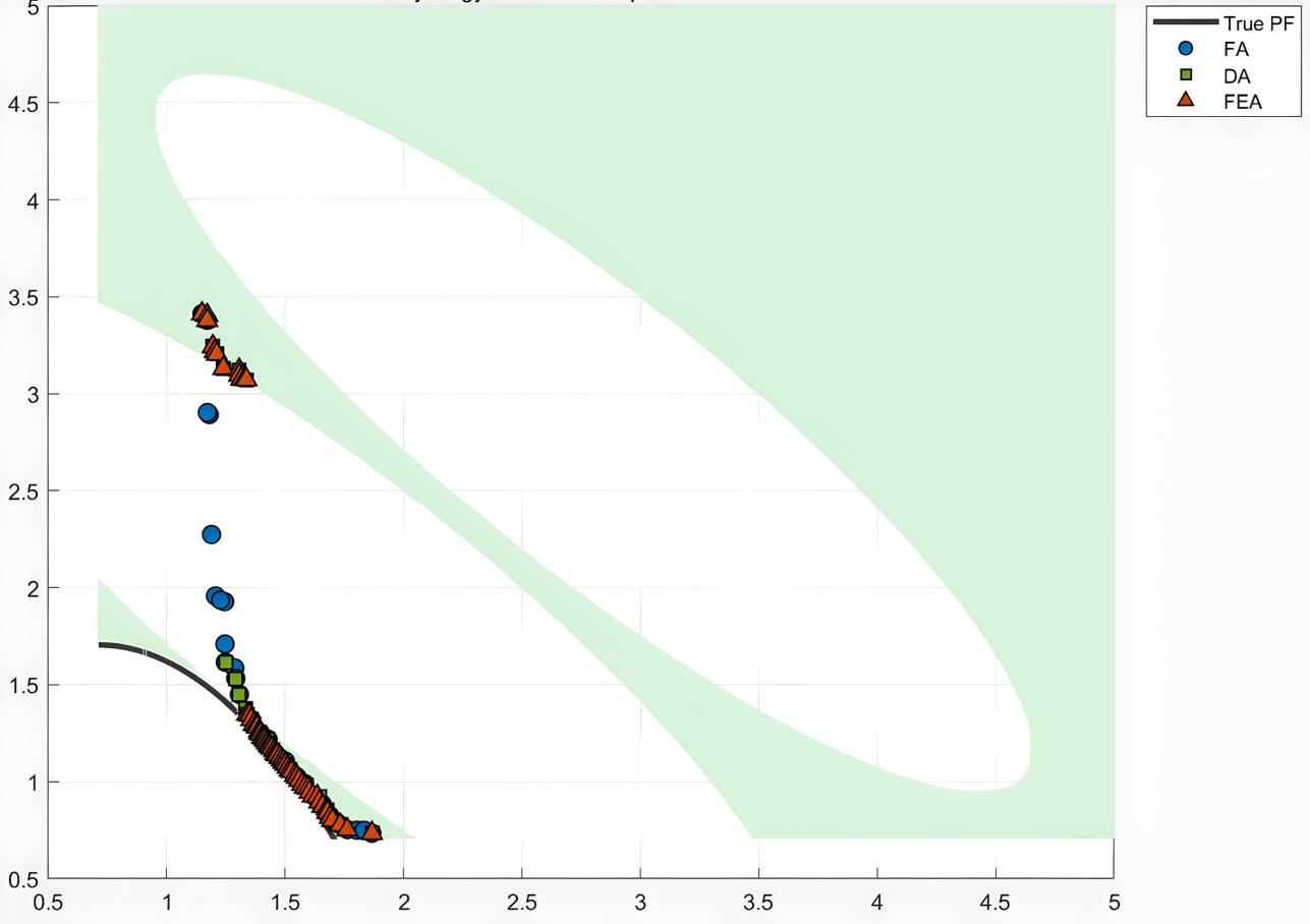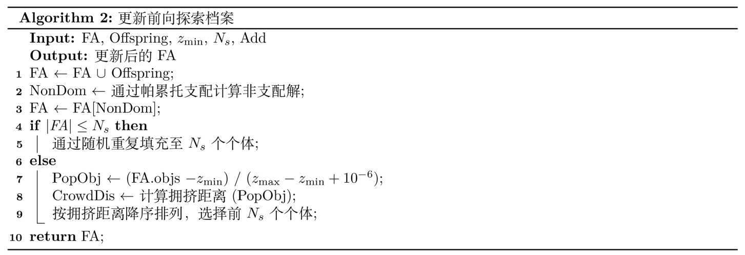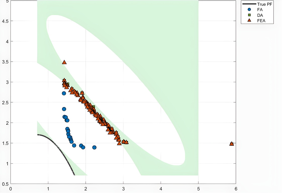 FA的设计目标是探索目标空间,发现潜在的优质解方向。FA采用无约束的Pareto支配关系,允许不可行解的存在,这使得算法能够探索可行域边界附近的区域。