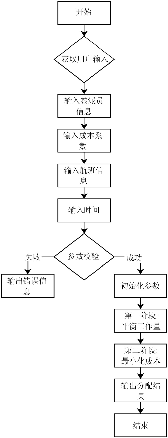 算法第一阶段的目标是找到工作量分配最平均的方案,确保所有签派员的工作量尽可能接近平均值。其核心思想是通过模拟退火算法优化工作量的公平性,暂时不考虑成本因素。算法第一阶段的执行过程有三个步骤,步骤1是初始化解,其特点为国际航班分配给国际签派员(随机选择)、特殊航班分配给特殊签派员(随机选择)、普通航班轮询分配给所有签派员(确保初步平衡)。步骤2是温度控制即主循环,采用邻居解生成策略,即在保持资格约束的前提下,随机选择航班分配给有资格的签派员。步骤3则为温度下降,通过不断迭代完成从广泛搜索到精细搜索的转变,完成工作量的均分。图2是算法第一阶段流程图。