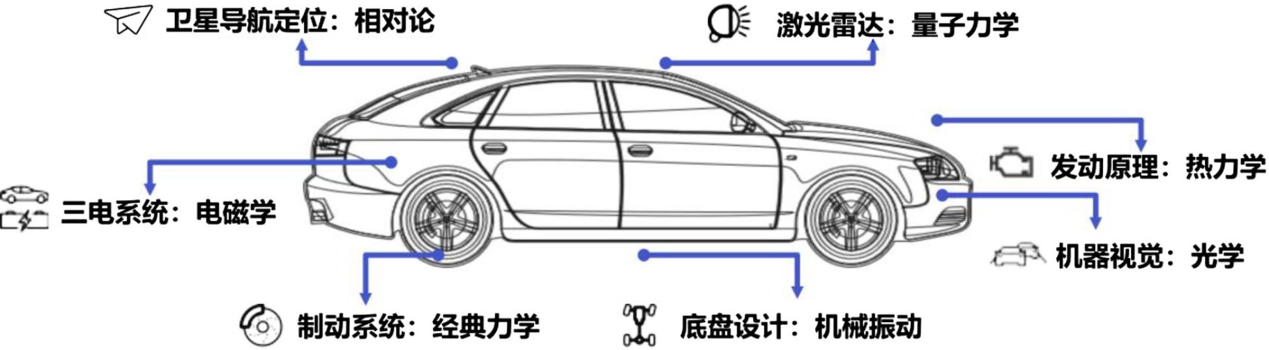 新质生产力是以科技创新为主导、实现关键性颠覆性技术突破而产生的先进生产力质态,旨在摆脱传统经济增长路径,通过技术跃升和产业升级增强核心竞争力。作为我国国民经济的战略性产业,汽车产业尤其是新能源汽车产业在《“十四五”规划纲要》中被列为重点发展的战略性新兴产业之一。作为符合数字化、智能化、绿色化发展方向的新兴产业,新能源汽车产业充分体现了新质生产力的特质,是我国新质生产力的典型代表[16]。需要注意的是,汽车产业覆盖面广,产业链长,且上下游协同复杂,同时受市场波动与外部环境影响显著,直接关系到产业安全与国家制造业的核心竞争力。保持并扩大我国新能源汽车产业的领先优势,需要在人才培养方面做好工作。在理工科专业的大学物理课堂,以汽车产业为载体对物理规律进行讲解,加深学生汽车技术应用的直观理解,以培养学生的在新质生产力方面的工程创新能力则显得十分必要。