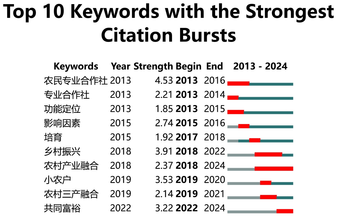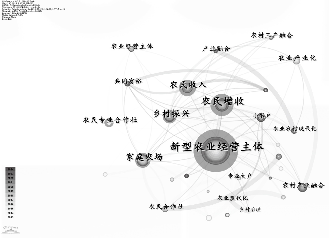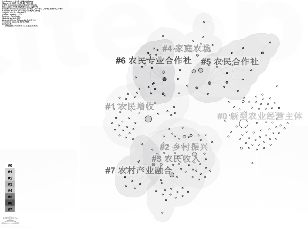 本文运用CiteSpace软件,可视化分析2013~2024年新型农业经营主体促农增收相关问题,研究结果如下。