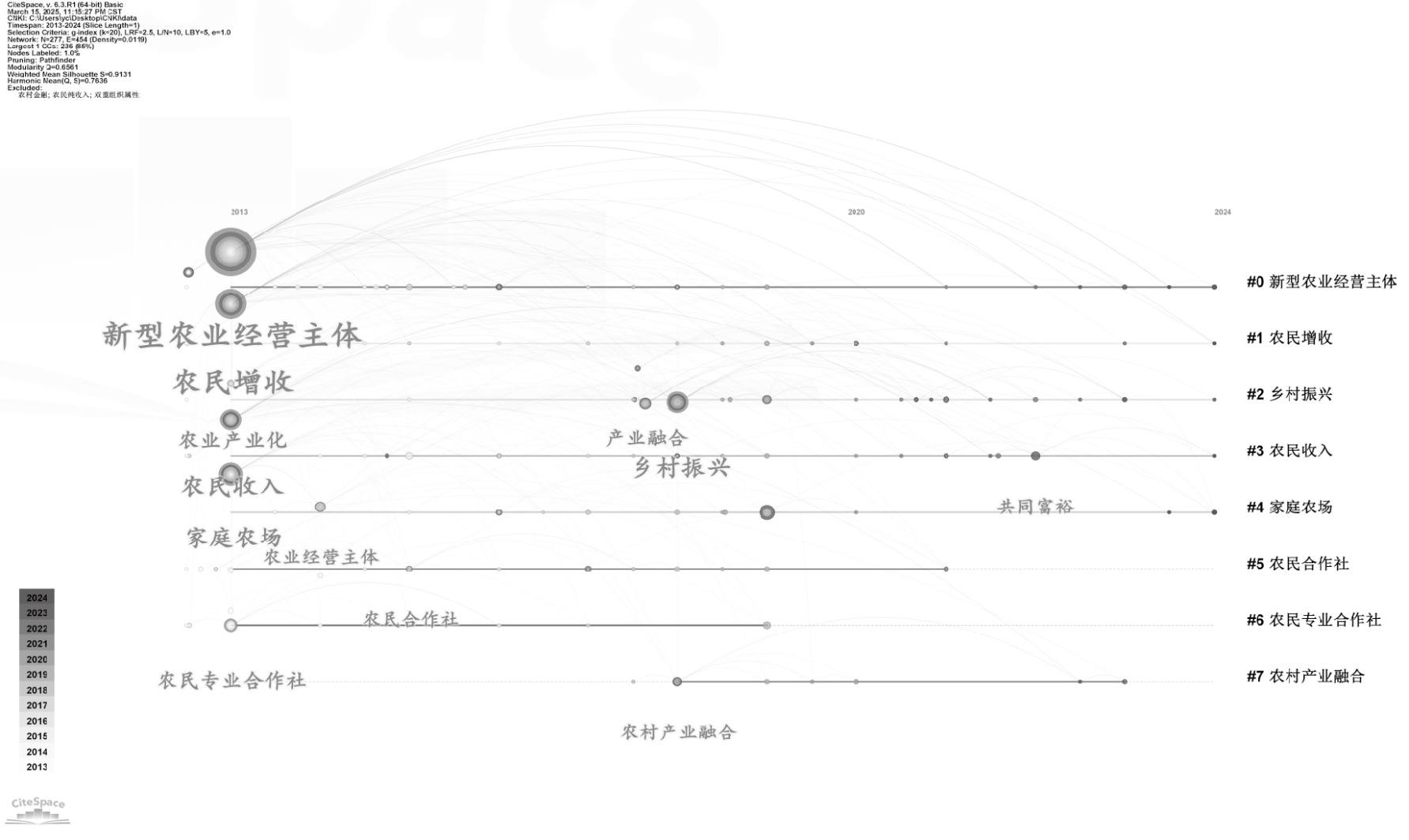 图4. 新型农业经营主体 + 农民增收的关键词时间线图谱
