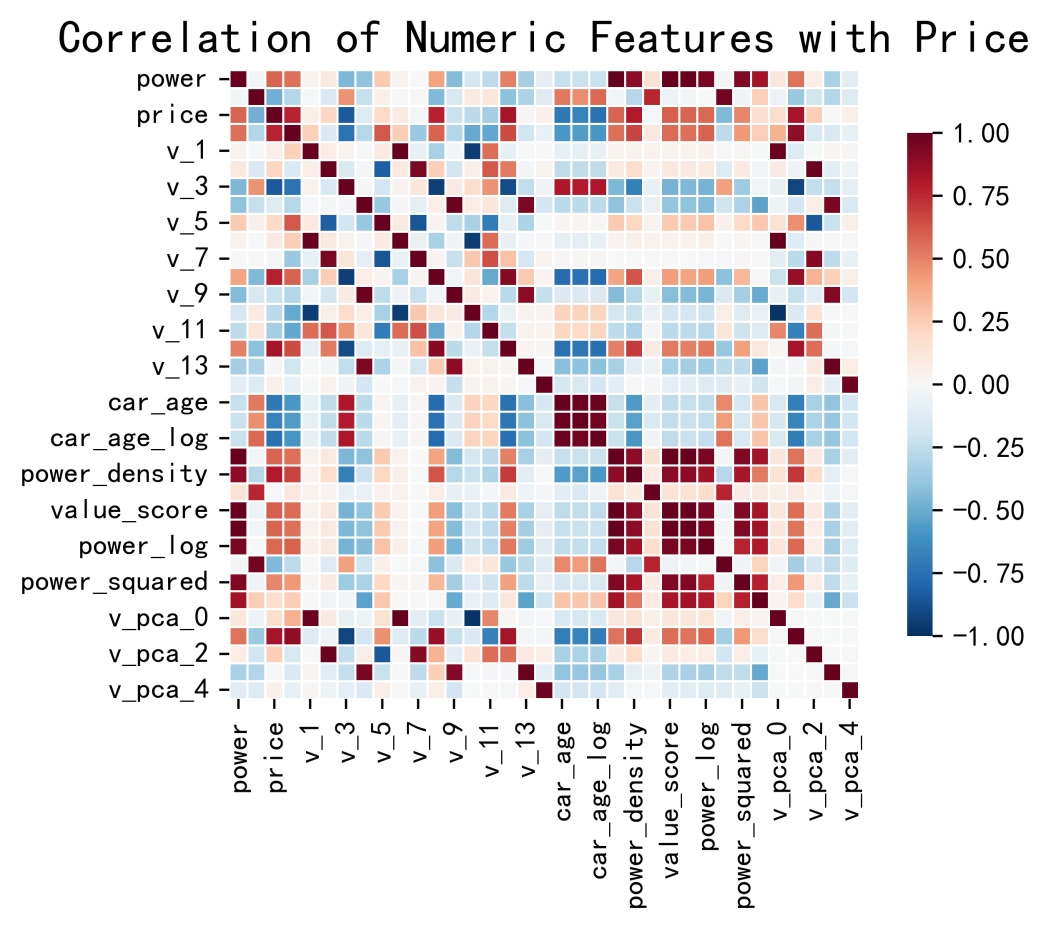 (1) 系统化的特征工程:通过对车辆使用特征(功率、里程、车龄等)进行非线性变换和交互特征构建,提取具有物理意义的衍生特征,增强了模型的表达能力。