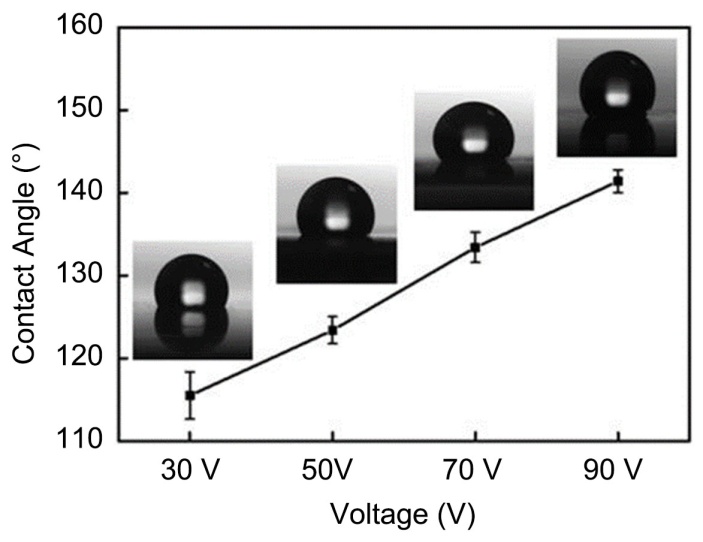 Figure 3. Hydrophobic properties of porous stainless steel under different applied voltages
