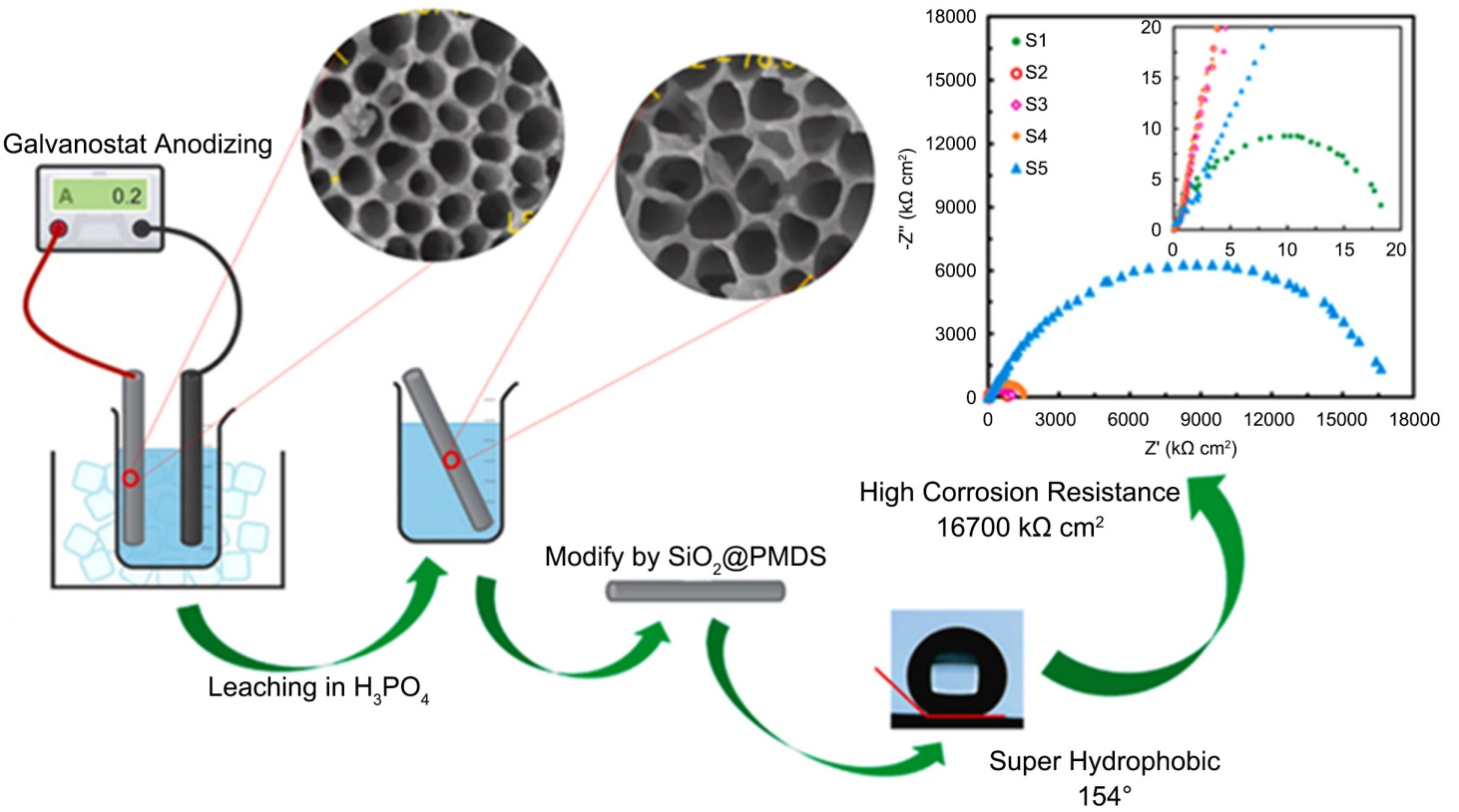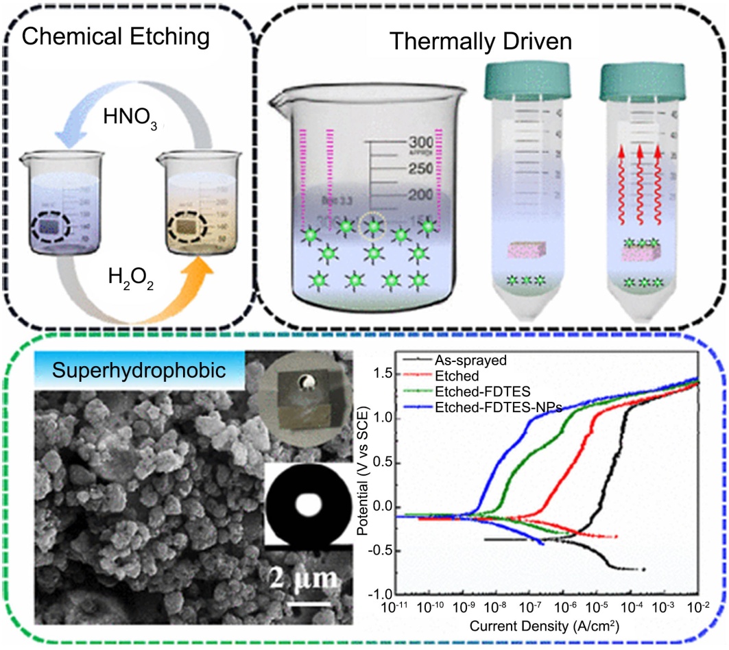 Figure 13. A superhydrophobic surface was fabricated by chemical etching combined with thermal driving, exhibiting excellent corrosion resistance