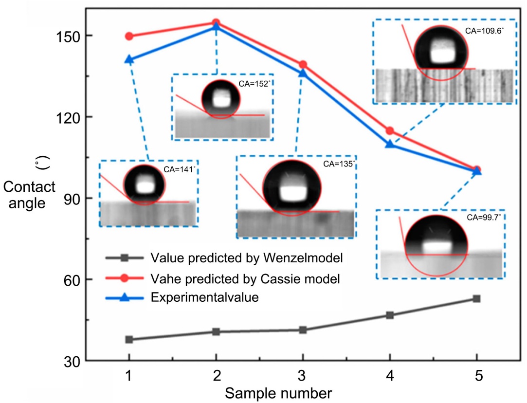 时,液–气界面成为主导,符合超疏水表面的特性: