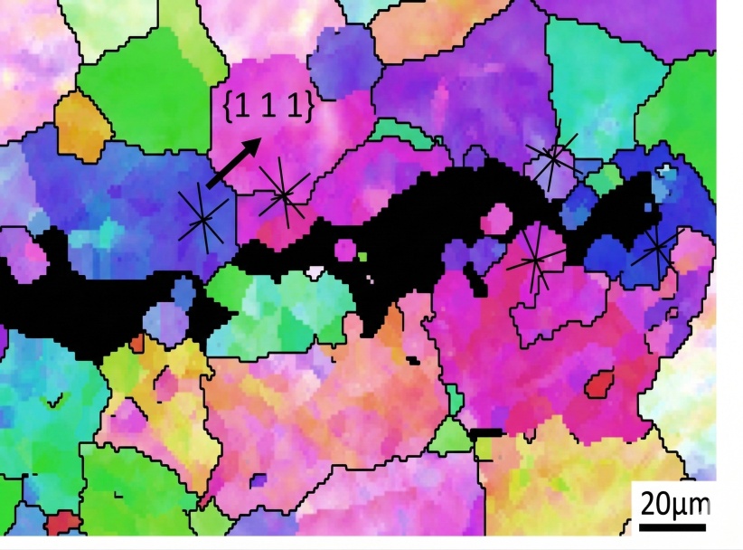 晶界PFZ为氢原子的优先富集区,因PFZ无析出相,晶格缺陷少,氢原子扩散阻力小,易在PFZ与晶内的界面处富集,导致晶界结合力显著下降,成为氢致沿晶开裂的优先通道。X向试样小角度晶界的氢扩散阻力小于大角度晶界,但因晶粒沿轧制方向定向排列,氢原子沿轧制方向扩散,不易在裂纹尖端大量富集;Y向试样大角度晶界的氢扩散阻力大,氢原子易在晶界交汇处与裂纹尖端富集,形成高氢浓度区,显著加剧氢脆效应,使沿晶断裂比例大幅提升。