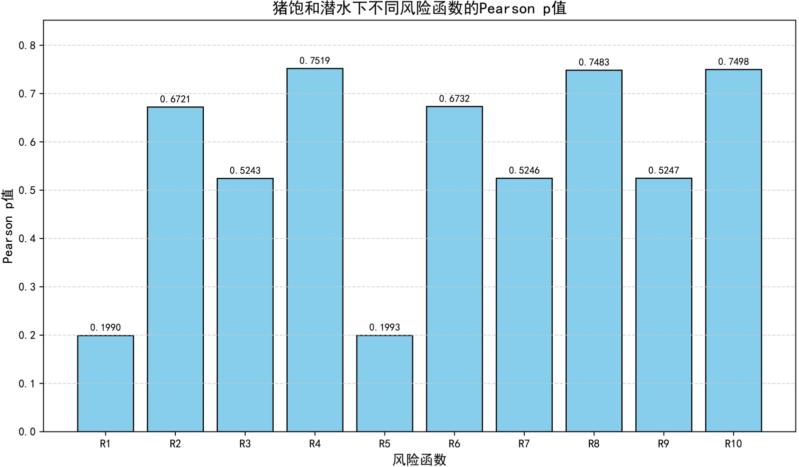 图2. 猪饱和潜水下不同风险函数的Pearson p值