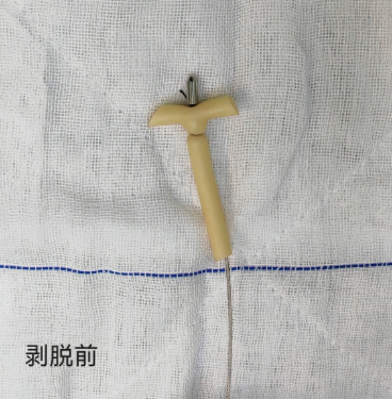 图1. T型管改制大隐静脉剥脱器(剥脱前、剥脱后)