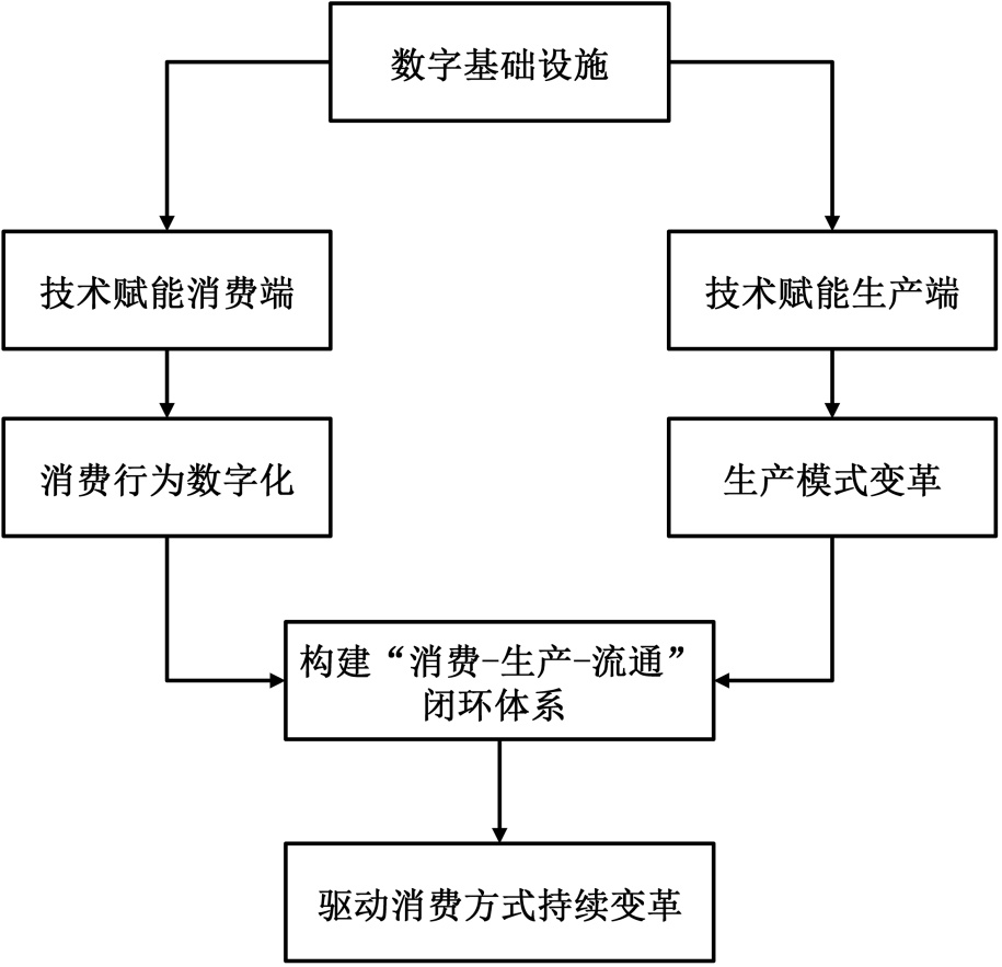 数据要素赋能是数字经济影响消费领域的核心机制,现有研究关于数字经济对消费的变革效应,本质上均是数据要素赋能的具体体现。马香品系统剖析数字经济时代居民消费变革的趋势与机理,指出消费方式从“同质化、被动化”向“个性化、主动化”转型,其深层逻辑在于数据要素打破了时空边界与信息壁垒,推动消费场景全链路重构与消费者自主选择权的释放[5]。在后续研究中,马香品进一步实证分析数据要素赋能环境下居民消费的实现效应,认为数据要素降低交易成本、提升供需匹配效率,是推动消费从“物质层面”向“精神层面”延伸的关键[6]。这两项研究为本文梳理消费生态在渠道、决策、支付、体验四大维度的重构表现提供了重要参考。