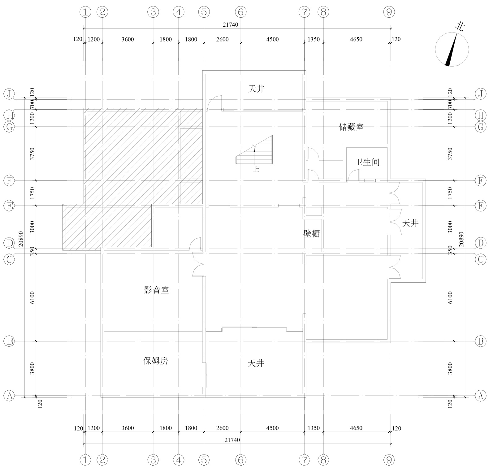 图1. 地下室现状平面图(非阴影区域均为扩建区域)