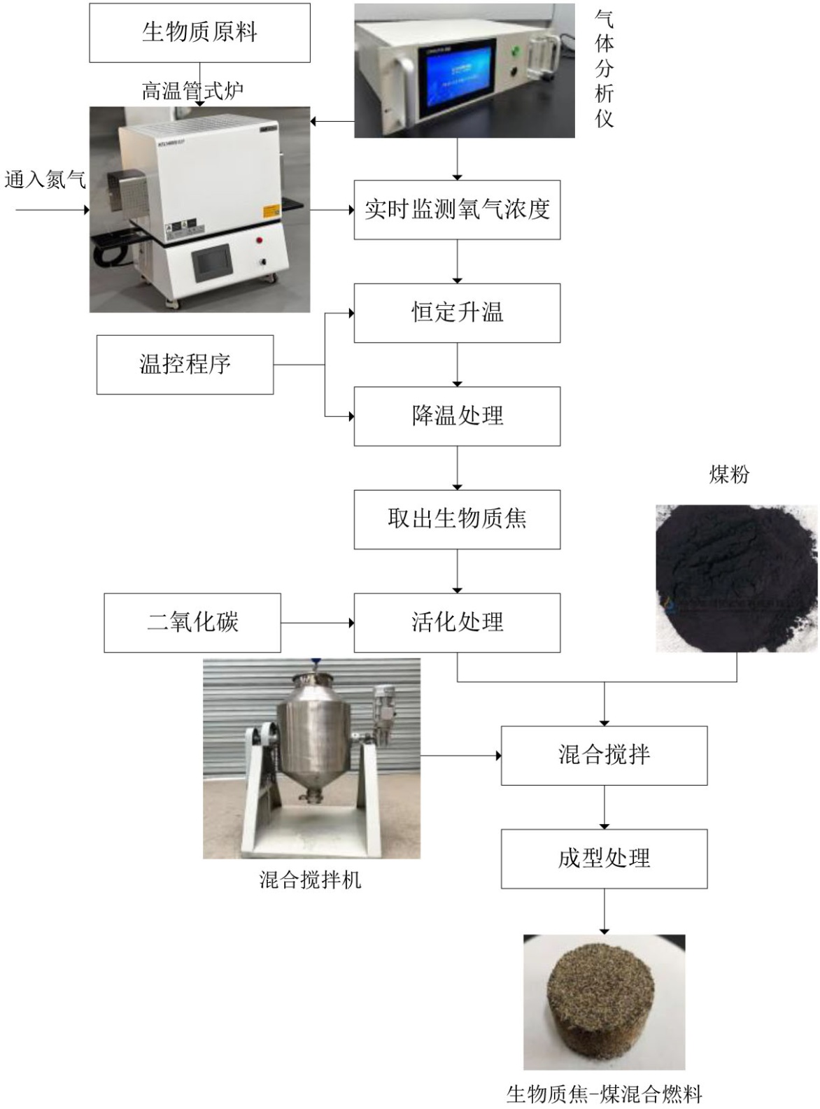 Figure 2. Preparation process of biomass char-coal mixed fuel