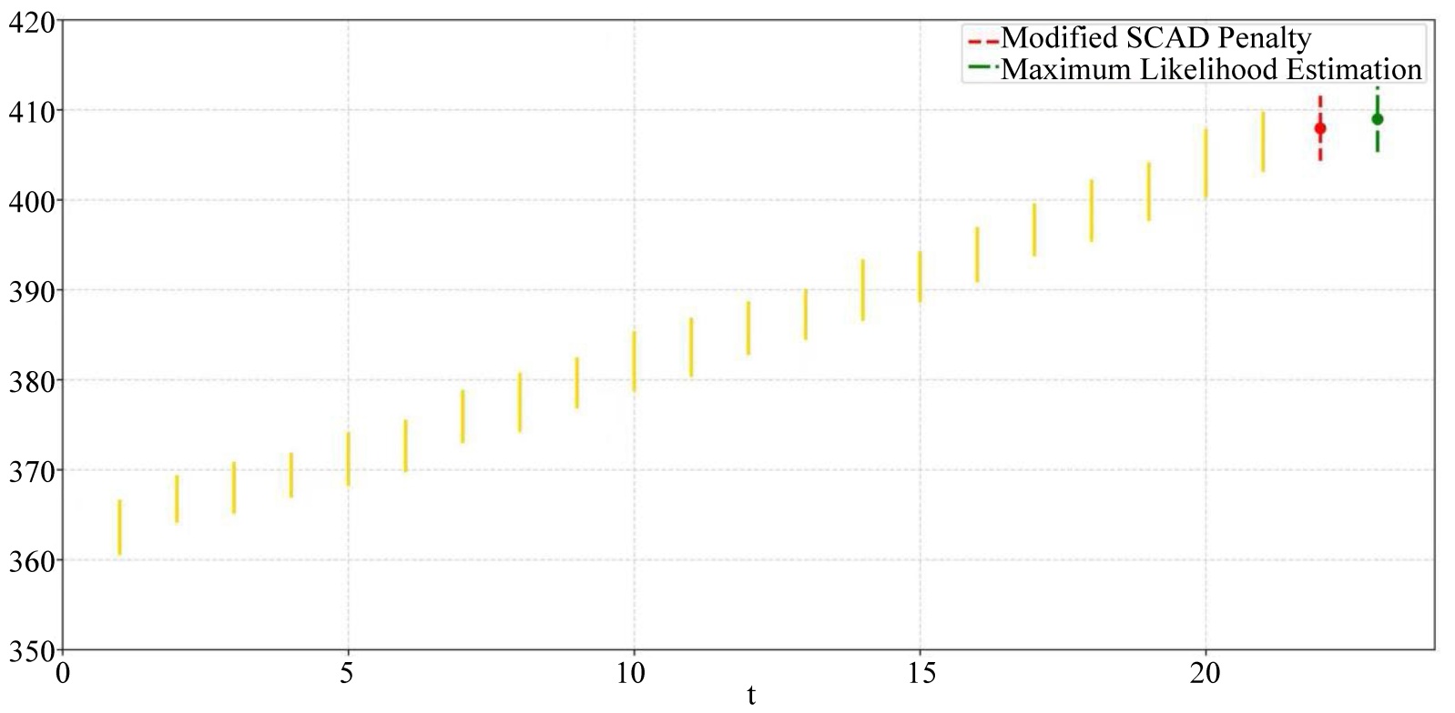 来预测后续未来值。将最小二乘估计值作为初始值代入改进的SCAD方法算法中。