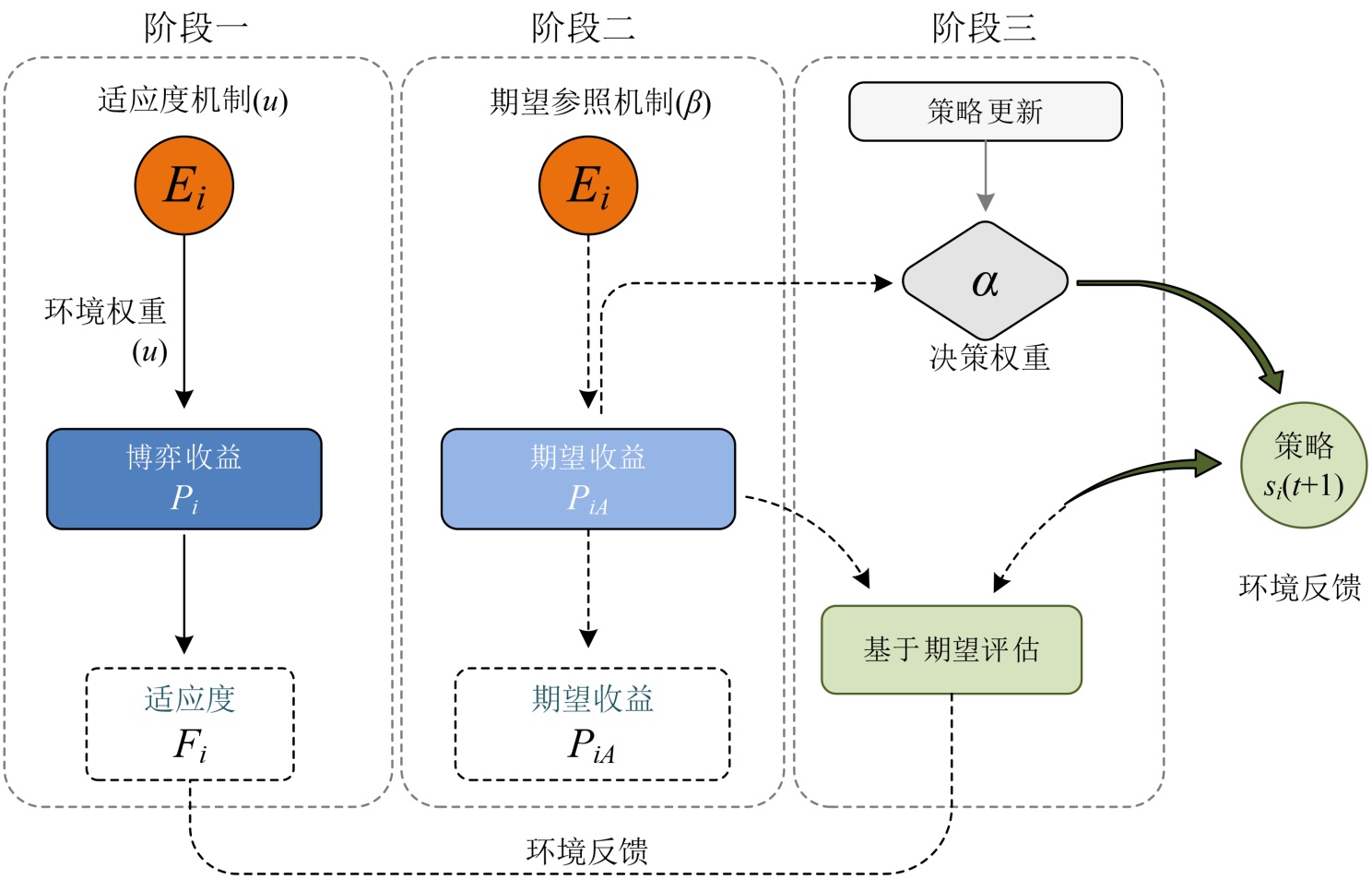 时,上述公式退化为标准的模仿更新规则。该模型各部分之间的关系如图1所示。
