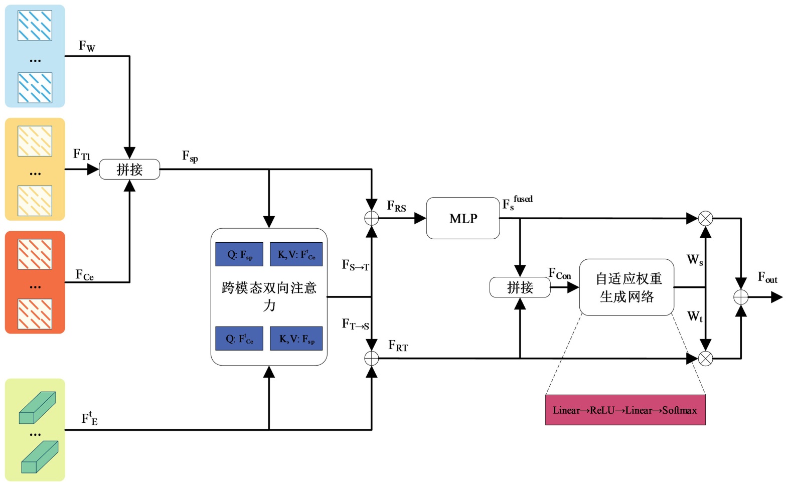 该模块包含时空特征对齐和协同融合两个主要部分。时空特征对齐部分通过双向注意力机制建立空间与时间特征的语义对应关系,协同融合部分实现增强特征的有效整合。设输入的空间特征为