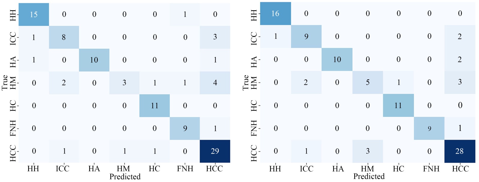 Figure 4. Comparison of confusion matrices of different models on the liver tumor classification task