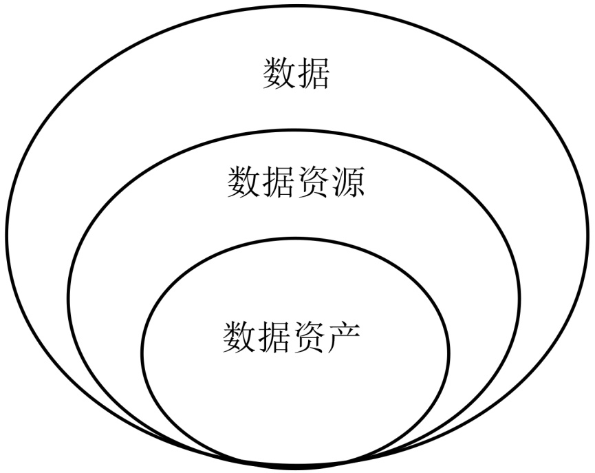 1) 数据、数据资源与数据资产。资源反映的是客观存在的事物,具有天然属性,表现为对实物或数量方面的管理;资产是一种价值化储藏手段,具有经济属性,代表所有者在一段时期内通过持有或使用该实体所生产的一项或系列经济收益。数据是一项资源,数据资产是对于符合会计意义资产标准的数据资源的资产化。如图1所示,从泛在无序的符号、资料到数据资源,再从数据资料转变为数据资产,一般意义上的数据需要经过一定程度的采集、处理与存储之后才能转变数据资产,这种反复的处理与提纯过程也意味着,实际上仅有一小部分数据资源能够被确认为数据资产。