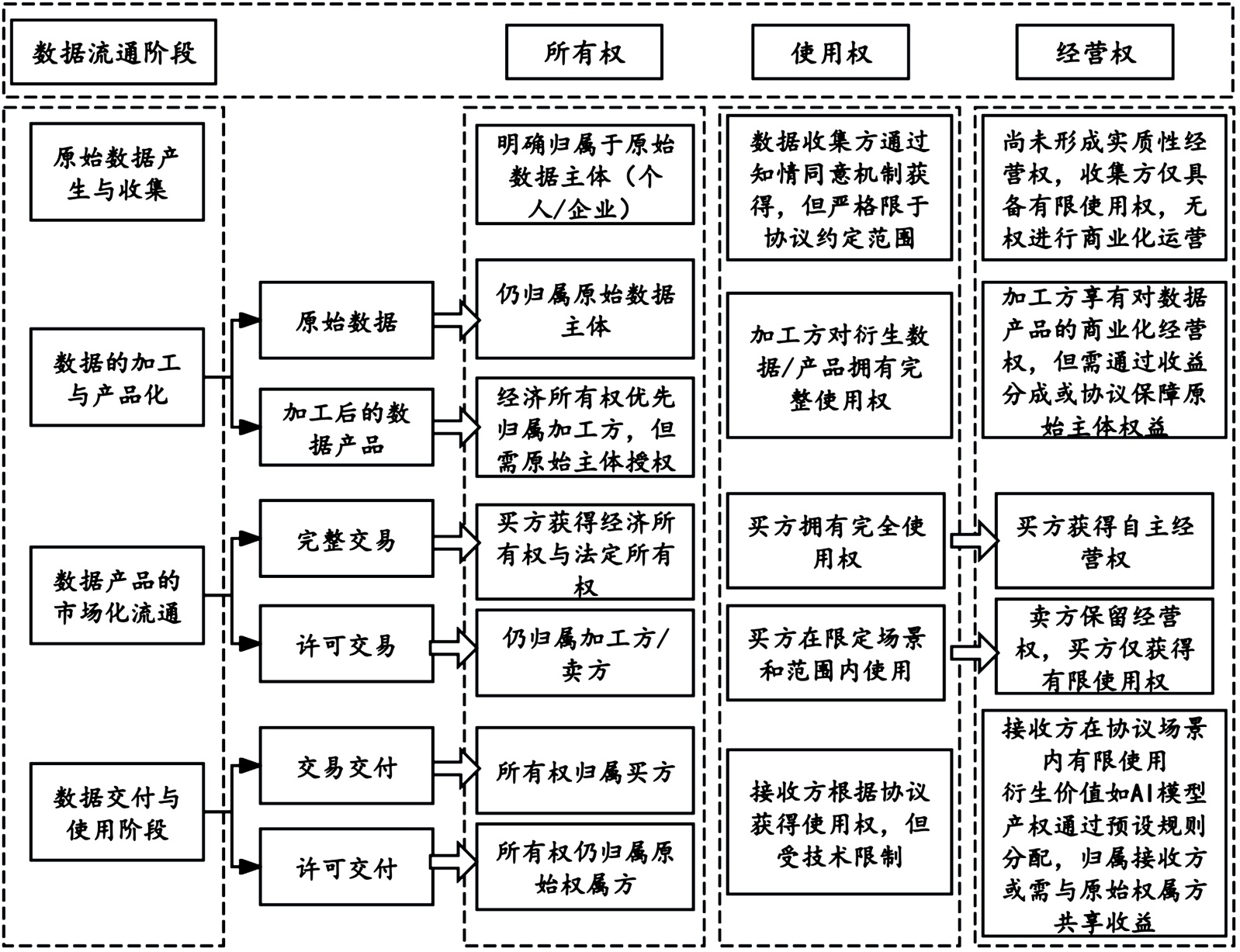 数据资产本质上是数据经过加工和利用形成的资产形态。本文认为,在AI时代多维度信息共享的背景下,数据资产已呈现出高度多元化特征,其标准化程度不足、体系分散的现实问题,导致难以构建普适性评判标准。因此,确权需回归数据本源,聚焦数据动态流通过程中的核心属性,即以数据主体的权属状态是否发生实质性变更作为界定依据。