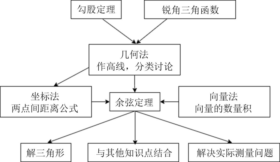 问题9 余弦定理与哪些已学知识存在联系?请从几何、代数、向量、三角等角度举例说明。