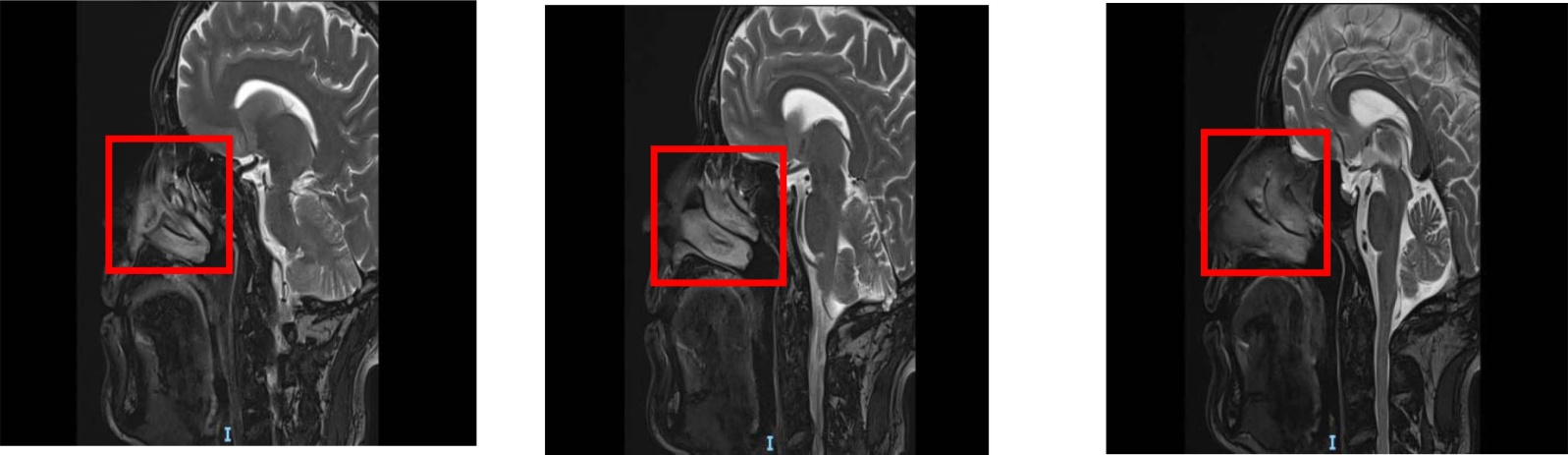 图5. 鼻部MRI鼻翼尤文肉瘤术后,未见明确复发征象