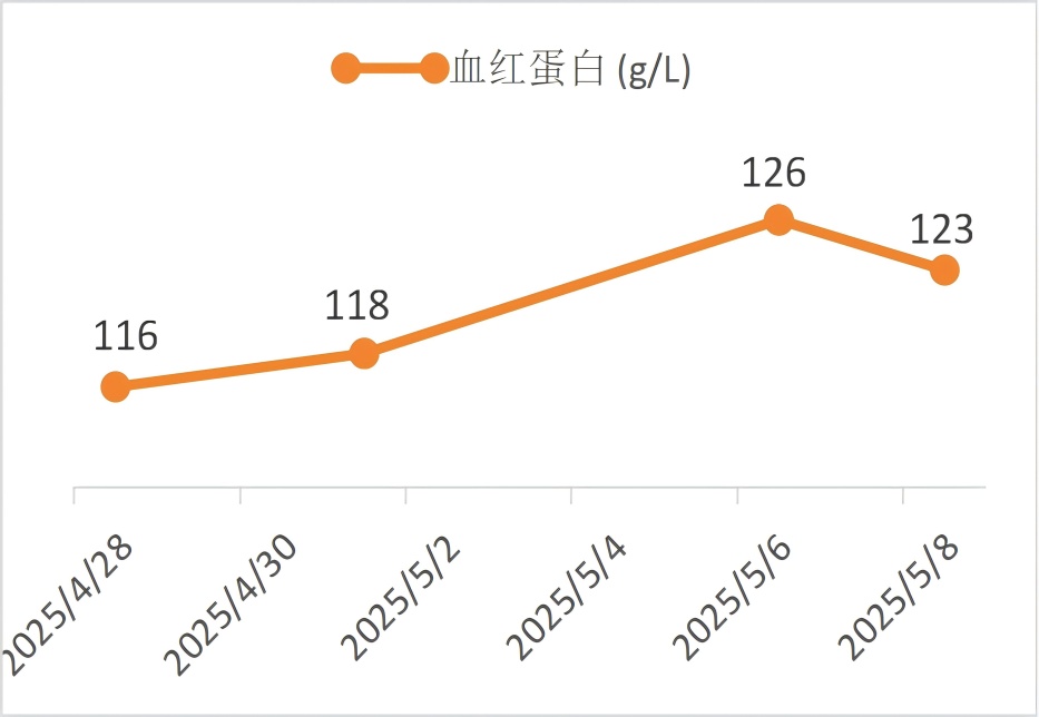 图2. 治疗期间D-二聚体与血红蛋白趋势图