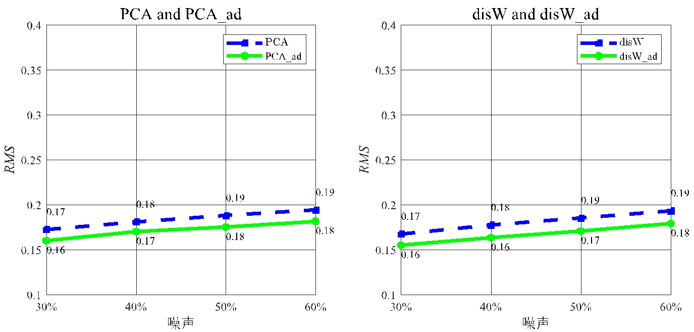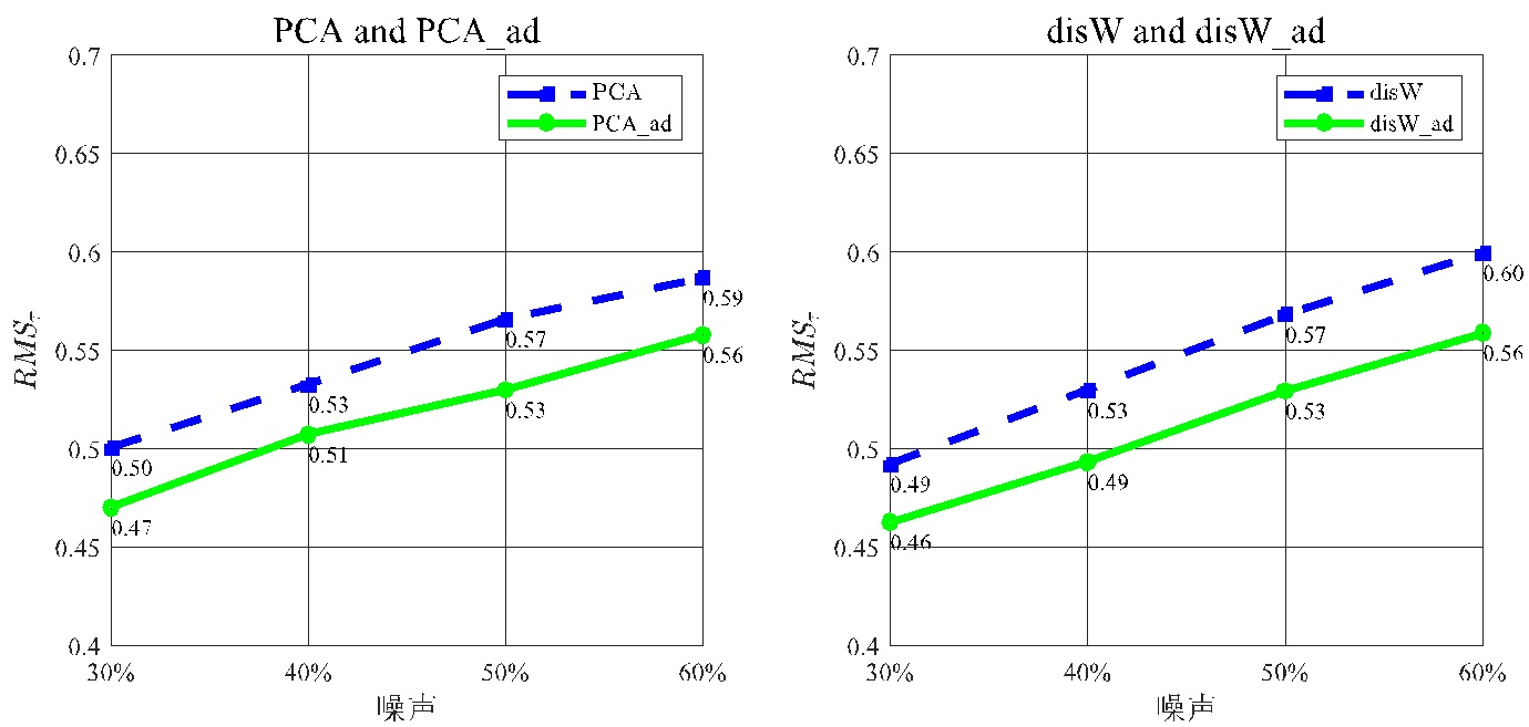 如表4~7和图2所示,四个模型在不同噪声水平下PCA_ad和disW_ad的