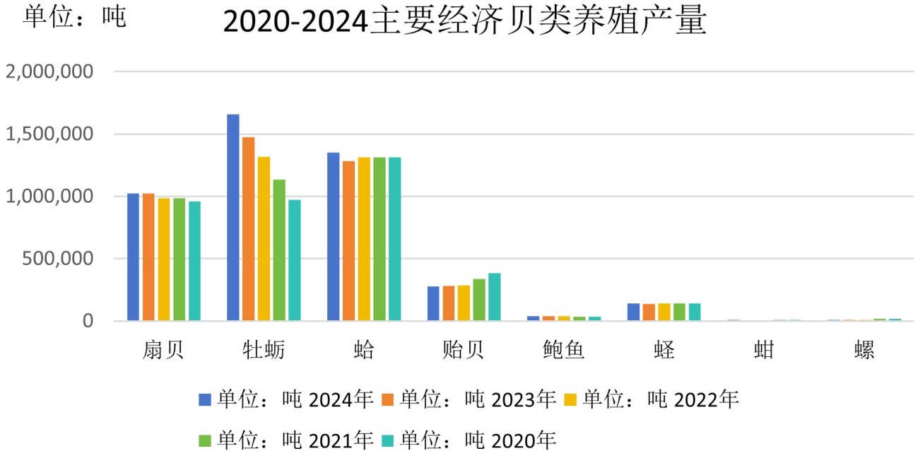 Figure 1. Production of main economic shellfish culture from 2020 to 2024