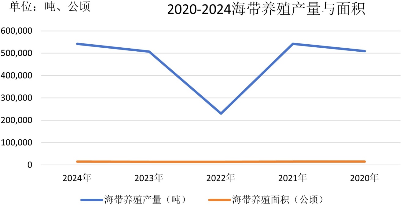 Figure 3. Production and area of kelp culture from 2020 to 2024