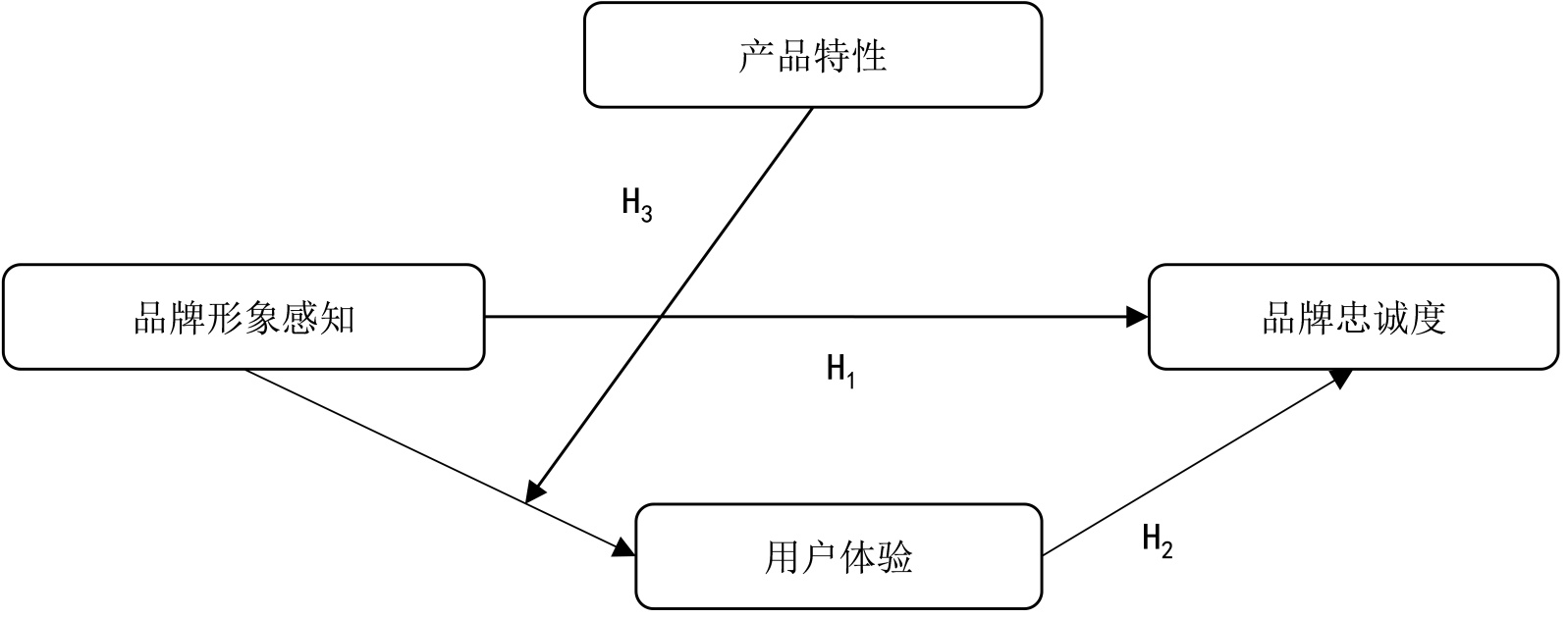 H3:产品特性正向调节品牌形象感知与用户体验之间的关系。