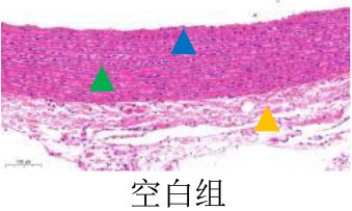 将大鼠主动脉分离后放置于浓度为4%的多聚甲醛溶液中固定24小时,之后进行石蜡包埋切片,切片后置于60℃烘箱中1~2 h,烘干。随后进行HE染色。