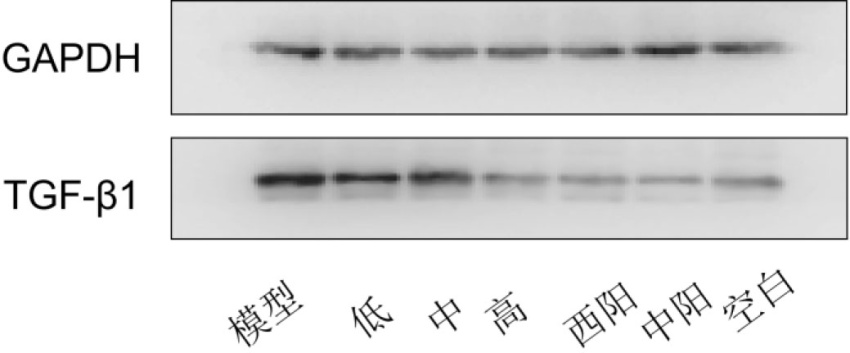 4.8. WB实验监测通脉刺五加胶囊对TGF-β1蛋白的表达情况
