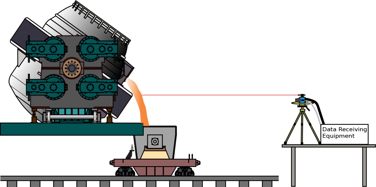 实验是在某大型钢铁厂的转炉炼钢现场作业区来开展进行的。考虑到在出钢的过程当中往往会伴随着剧烈的高温热辐射、偶发金属喷溅以及浓重的氧化烟尘环境,检测设备是无法去直接靠近熔融流股的。为此在经过现场勘测与安全评估后,最终选择将采集终端设备安装放置在距离转炉出钢口约20米的作业平台上,如图3所示。
