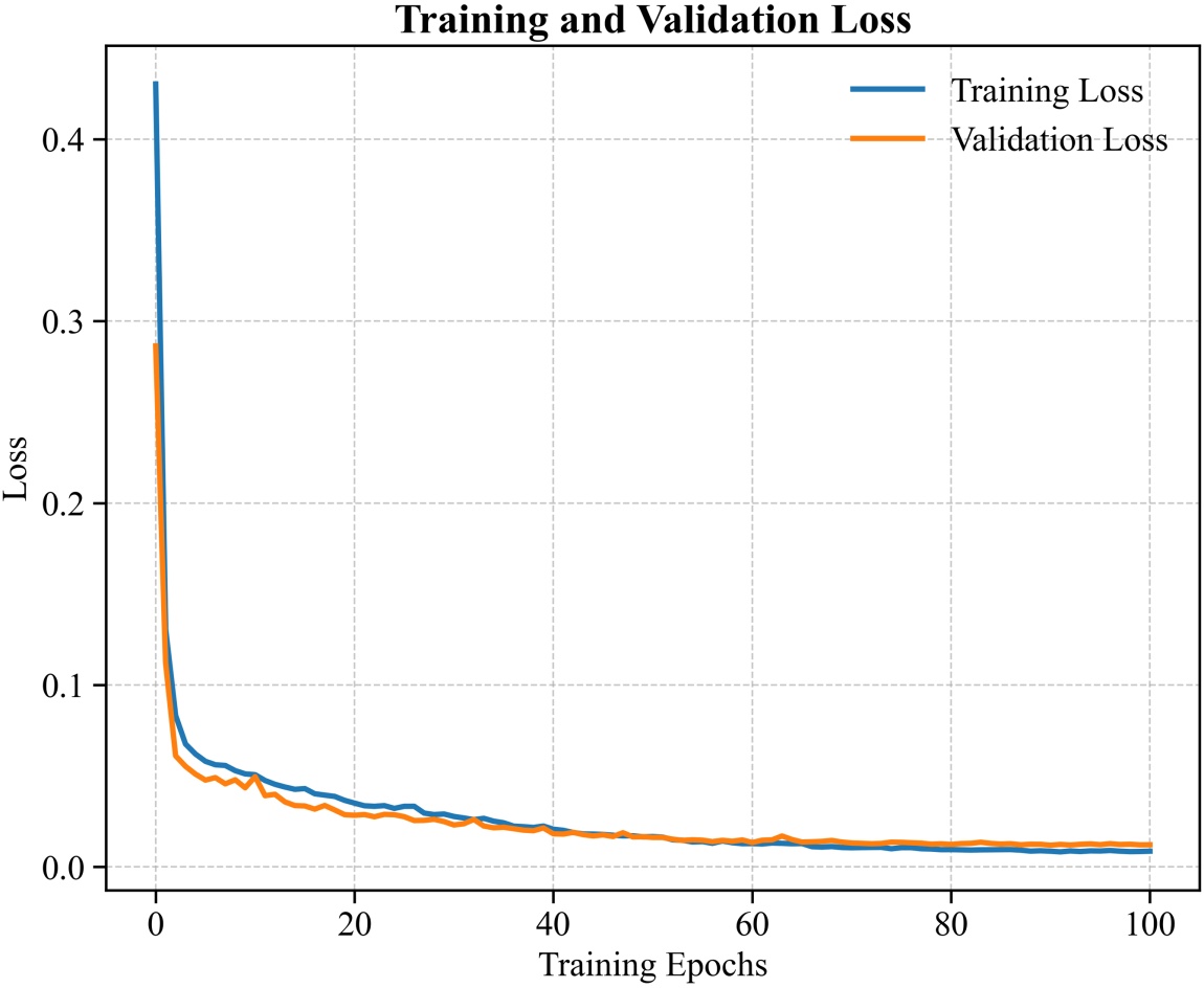 训练时通过借助Adam优化器,将初始学习率设定为5.5 × 10−4,并且借助于动态调度机制使其逐步降低。训练过程是采用批次大小为256的批量策略,使内存利用率能够获得提升。为了能够防止出现过拟合的情况,模型是在LSTM与全连接层之间加以引入Dropout (丢弃率为0.2)以及L2正则化(权重衰减系数为1 × 10−3)策略。整个训练过程启用了早停机制(patience = 10),从而确保在模型性能达到最优状态时把训练给终止掉。