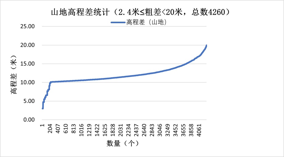 山地:高程中误差1.20米,最大误差2.40米(粗差 ≥ 2.4米) [13];