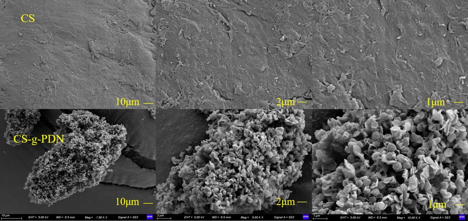 图5. CS和CS-g-PDN的扫描电镜图像