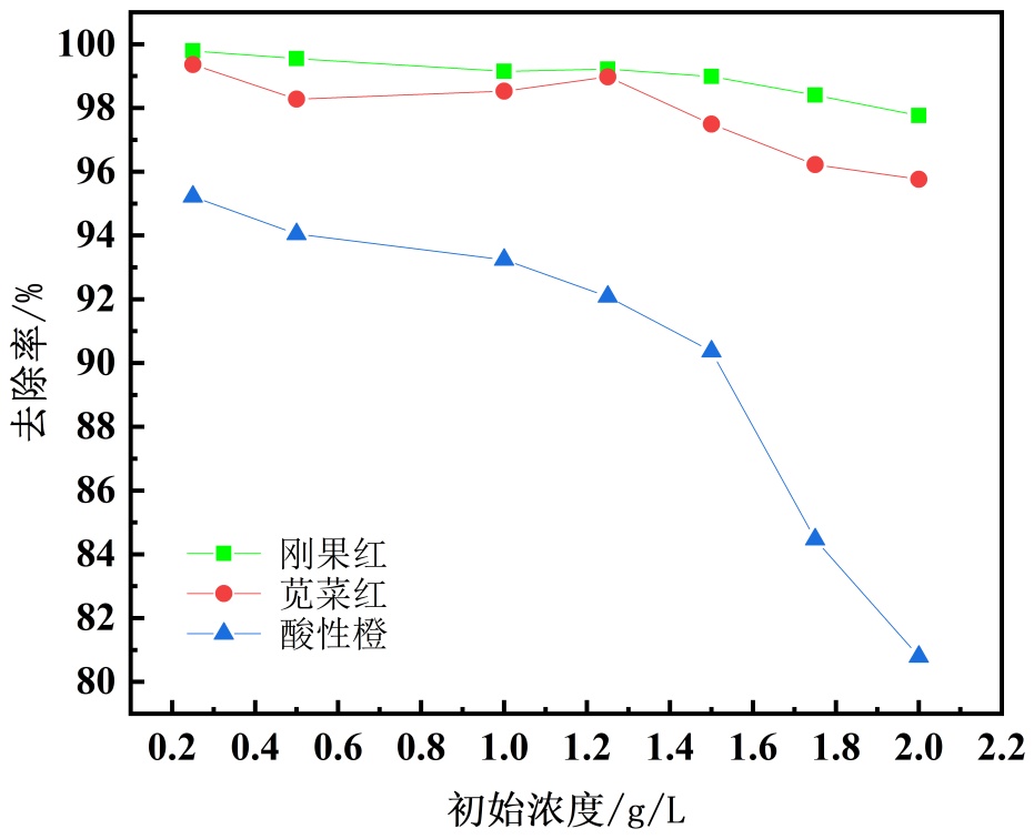 7.3. 初始染料浓度对于染料性能的影响