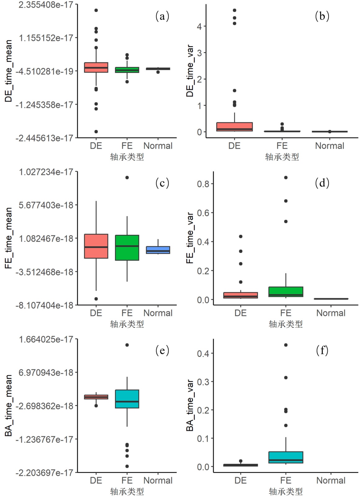 图8. 不同轴承类型时域特征分布比较