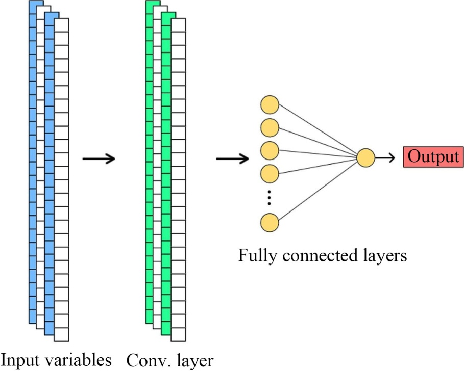 Figure 3. One-dimensional CNN model with one convolution layer and two fully connected layers
