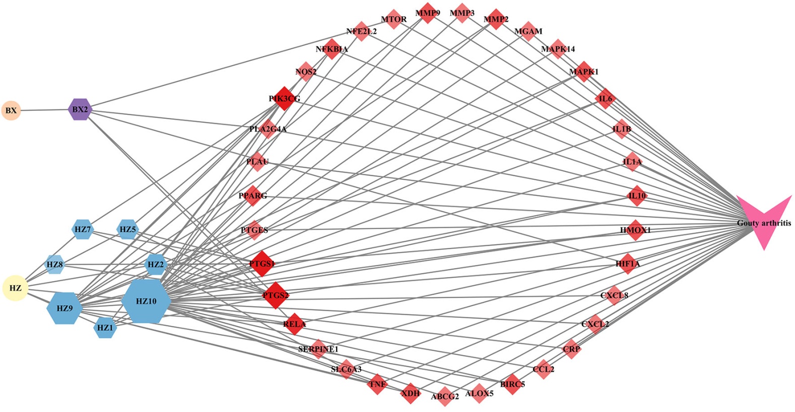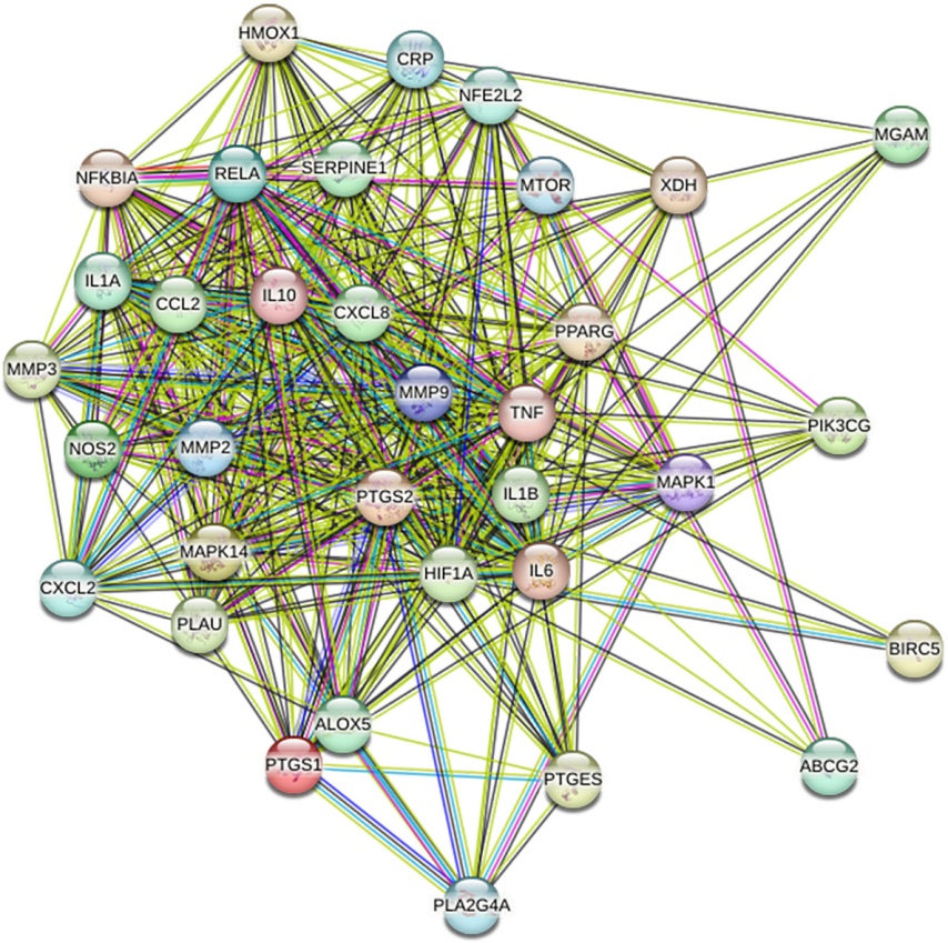 Figure 3. PPI network of “Polygonum cuspidatum-Smilax glabra” in the treatment of gouty arthritis