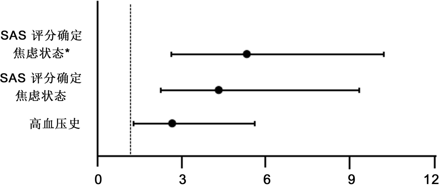 表11. SAS焦虑状态与心律失常发生的多因素二元Logistic回归分析