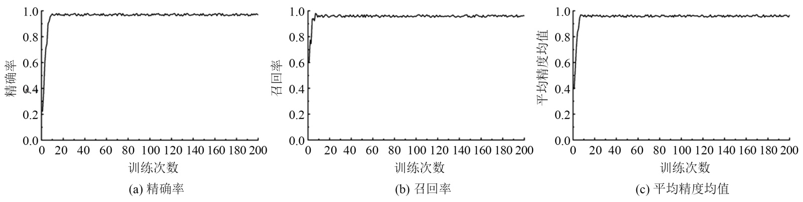 常见的模型评价指标有精确率(Precision)、召回率(Recall)和平均精度均值(mAP)。精确率是模型在训练过程中,正确预测为正的数量占所有预测为正的比重;召回率是模型在训练过程中,正确预测为正的占所有实际为正的比重;平均精度均值是模型在训练过程中,所有类别的AP的平均值。
