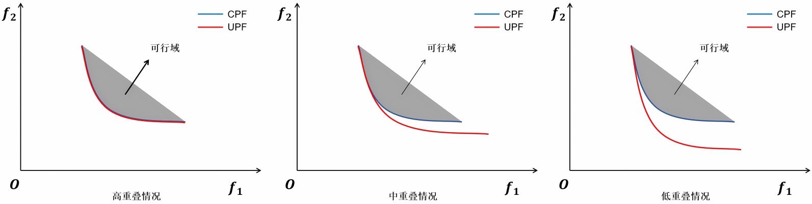 (1) 新型自适应双种群框架,通过聚类分类CPF-UPF重叠大小情况,实现针对性演化策略;